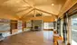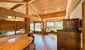 großzügiger Wohn- und Essbereich mit Kachelofen und Kamin