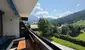 Von der vorgelagerten Balkon-Loggia, die mit einer Outdoor-Sitzgarnitur ausgestattet ist, hat man einen wunderschönen Ausblick über den Ort, zum markanten Hochkönigmassiv und zum Skigebiet am Hochmais, der als Einstieg in das weitläufige Skigebiet „Hochkönigs Winterreich“ bezeichnet wird, sowie im Südwesten zum etwas entfernt liegenden Skigebiet am Aberg. Der Balkon erstreckt sich über die gesamte Wohnungsbreite.