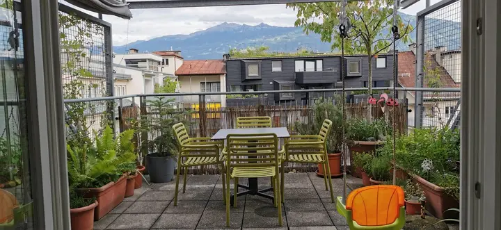 Ein besonderes Highlight sind die nach Süden, in Richtung eines ruhigen Innenhofes, ausgerichtete Terrasse und der Balkon, die traumhafte Ausblicke auf die Innsbruck umgebende Bergwelt bieten.