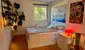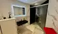 Das Badezimmer ist ein weiteres Highlight: Ausgestattet mit edlen Marmorfliesen, einer bodentiefen Glasdusche, einem modernen Spiegelschrank über dem Waschbecken und einem WC, bietet es stilvolle Funktionalität auf hohem Niveau.
