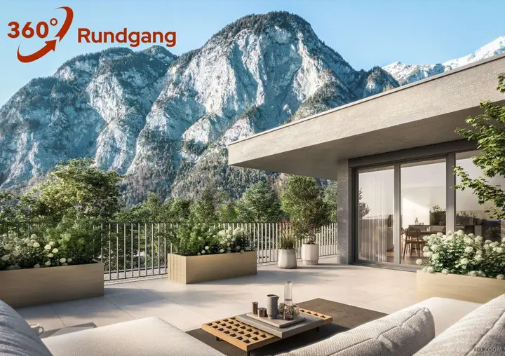 Die große teilweise überdachte Süd-West-Ost-Terrasse mit rd. 69m², lässt Ihren Blick ins Ferne schweifen. Genießen Sie den Ausblick ins Ober- und Unterinntal, Sellraintal und auf das umliegende Bergpanorama direkt von Ihrem neuen zu Hause aus.