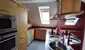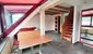 Im Eingangsbereich des ausgebauten Dachgeschoßes befindet sich eine Garderobe. Der Raum öffnet sich dann und man findet auf dieser Ebene der Maisonette-Wohnung Bad, WC, Wohn-/Essbereich und Küche. Im oberen Geschoß sind der Schrankraum und Schlafbereich.