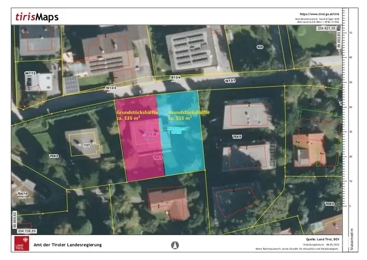 Aktuell weist das gegenständliche Grundstück eine Fläche von 1.075 m² aus. Nunmehr ist angedacht das Grundstück zu teilen um dementsprechend zwei Interessenten die Möglichkeit zu eröffnen, ihren Wohntraum zu verwirklichen. Das Bestandshaus muss im Falle der Grundstückstrennung abgebrochen werden.