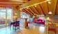 Das Herzstück des Apartments bildet der offene Wohnbereich, der Wohnen, Essen und Schlafen unter einem Dach vereint. Die Inneneinrichtung wurde fachmännisch von Tischler gestaltet und die Dachschrägen wurden in cleverer Weise genutzt, um untertags die ausziehbaren Doppelbetten auf beiden Seiten im Dachraum fast nahtlos verschwinden zu lassen. Große Fenster durchfluten den Raum mit Tageslicht und bieten Zugang zum ca. 14 m² großen Balkon mit malerischem Blick auf die umliegende Berglandschaft und die Hohe Munde.