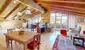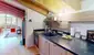 Die gut ausgestattete Küche mit einer tiefen Arbeitsplatte aus dunklem Stein bietet auf kleinem Raum reichlich Arbeitsfläche. Moderne Geräte, darunter ein eingebauter SMEG Backofen, ein eingebauter Geschirrspüler samt Kühl- und Küchenschrank auf der gegenüberliegenden Seite nutzen den Raum perfekt aus. Der angrenzende Ess- und Wohnbereich nahe am hochwertigen Montegrappa Schwedenofen mit Speckstein, lädt vor allem in den Wintermonaten zum gemütlichen Beisammensein ein.