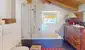 Die beiden Badezimmer sind mit weißen Fliesen und einer kontrastierenden blau gefliesten Verkleidung der Badewanne gestaltet. Eine Duschabtrennung aus Glas, ein Waschtisch, WC und Bidet und ein Fenster mit natürlichem Licht bieten unter der Dachschräge sowohl Charakter und gleichzeitig Funktionalität. In einem der Badezimmer ist ein Waschmaschinenanschluss mit dazugehöriger Maschine vorhanden.
