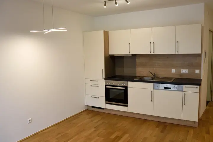 Die Wohnung besticht durch ihre durchdachte Raumaufteilung und die modernen Ausstattungsmerkmale. Mit zwei hellen Zimmern ist sie ideal für Singles, Paare oder kleine Familien. Die offene Wohnküche ist mit einer modernen Einbauküche ausgestattet, die sowohl Funktionalität als auch ästhetischen Reiz vereint. Hier können Sie Ihre Kochkünste entfalten und gemeinsam mit Freunden und Familie unvergessliche Momente erleben.