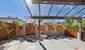 Vor dem Haus befindet sich ein gemütlicher Garten mit einem überdachten Sitzbereich, der zum Entspannen und Verweilen einlädt.