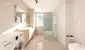 Das Badezimmer mit knapp 7 m² ist angenehm groß und umfasst Dusche, Waschbecken und WC. Ein praktischer Vorraum verbindet alle Räume effizient.