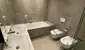 Die Ausstattung umfasst eine maßgefertigte Tischlerküche mit Dampfgarbackofen, Induktionsfeld mit integrierter Absaugung, Geschirrspüler und Spülbecken. Das Badezimmer bietet Glasduschwände, WC und LED-Spiegelschränke.