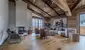 Großzügiger Wohn- Ess- und Kochbereich mit Kamin und Sichtdachstuhl