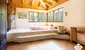 Die klare Linienführung im toskanischen Stil, kombiniert mit Naturstein, Holz und lichtdurchfluteten Übereck-Fenstern, schafft ein Ambiente, das gleichermaßen repräsentativ wie wohnlich wirkt. Ein überdachter Außensitz lädt dazu ein, die immer wärmer werdenden Alpen-Sommer stilvoll geschützt zu genießen. Im Winter öffnet sich der Blick auf die verschneiten Hänge, während im Sommer das satte Grün der Natur den Rahmen für Ruhe und Entspannung bildet.