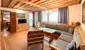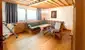 Rechts entlang des Flurs gelangt man in die Küche sowie das daran anschließende Wohnzimmer – beide Räume bieten direkten Zugang zur westseitig ausgerichteten Loggia mit Blick ins Grüne und auf die Berge.