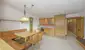 Sodann kommt man in das große Wohn/Esszimmer, wo sich auch über die gesamte Breite die Einbauküche mit allen Geräten befindet.