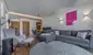Der Eingangsbereich empfängt Sie mit einer eleganten Garderobe sowie einer Gäste-Toilette. Die offene Wohnküche ist mit einem modernen BORA-Kochfeld ausgestattet und fügt sich harmonisch in den Wohn- und Essbereich ein, der mit einer stilvollen Essgruppe und einer gemütlichen Couch zum Verweilen einlädt.