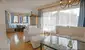 Ein gemütlicher Erker schliesst sich an. Zudem sorgt ein wärmender Kachelofen nahe des Sofabereiches für Gemütlichkeit. Der lichtdurchflutete Wohn- Ess- Bereich bietet Zugang zur breiten Terrasse und dem Gartenanteil.