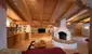 Wohnbereich mit Kachelofen, Kamin und Galerie