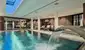 Der Lodge-Bereich beherbergt weiters ein eigene Bar-Küche mit Küchengeräten von Gaggenau und einen eindrucksvollen Billardtisch, welcher in alter Eiche gehalten ist. Als weiteres Highlight des Hauses erstreckt sich im Erdgeschoss der Wellnessbereich. Dieser beherbergt einen großzügigen Indoor Pool mit Gegenstrom-Anlage, eine finnischen Sauna und ein orientalisches Dampfbad.