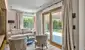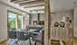 Der offene Wohn- und Essbereich mit bodentiefen Fenstern und raumhohen Glasfronten ist lichtdurchflutet und ein echtes Highlight. Altholzelemente, stilvolle Materialien und hochwertige Möblierung schaffen ein elegantes, gemütliches Ambiente.