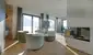Hier steht eine exklusive Wohnung über zwei Etagen zur Vermietung. Im Erdgeschoss befindet sich ein schickes Entree, die Designerküche samt Back- Kitchen sowie ein großzügiger Essbereich für gemütliches Zusammensitze, ein Sofabereich schließt sich an. Ein wärmender Kamin sorgt für behagliche Stimmung. In dieser Etage befindet sich ein weiteres Schlafzimmer ( derzeit als Büro genutzt) sowie ein stylisches Duschbad und ein Gäste- WC.