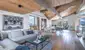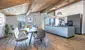 Das gesamte Penthouse wird von einem Sichtdachstuhl aus gehackter Eiche geprägt, der eine warme und stilvolle Atmosphäre schafft. Der großzügige offene Wohn- und Essbereich geht fließend in die drei Balkone über, die den Blick auf die spektakuläre Bergwelt freigeben:
