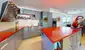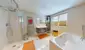 Der Wohnbereich ist modern und gemütlich zugleich gestaltet – mit stilvollem Mobiliar, Home Entertainment, Licht- und Vorhang-Steuerung und viel Liebe zum Detail. Die offene Designküche überzeugt mit hochwertigster Ausstattung, Arbeitsplatten in rotem Strassgranit, modernen Geräten und einer Kücheninsel als Sammelpunkt zum Kochen und für den gemeinsamen Apéro, der am angrenzenden Essbereich mit massivem Holztisch und Lederstühlen fortgesetzt werden kann.