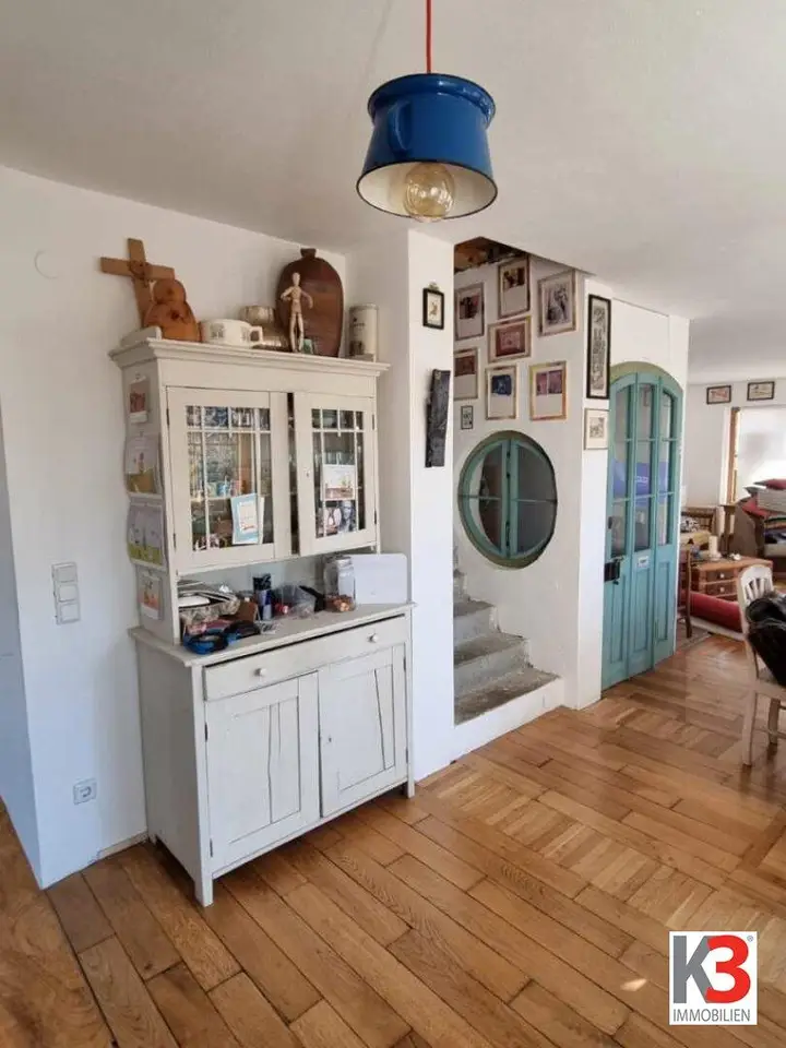 • Offener Koch-/Ess-/Wohnbereich - In diesem großzügigen, lichtdurchfluteten Raum mit Kamin Anschluss liegt ein antiker Parkettboden aus der Administrativen Bibliothek des Bundeskanzleramtes. Dieser Raum bietet direkten Zugang auf die Sonnenterrasse.