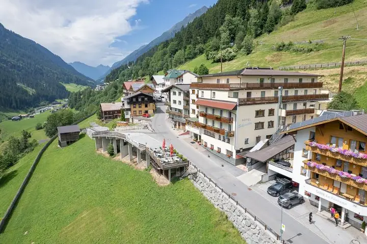 Die hier angebotene Immobilie wurde 1963 als Wohnhaus mit Fremdenpension errichtet und laufend in immer neu dazukommenden Ausbaustufen erweitert und als Ferienhotel mit bis zu 54 Gästezimmern geführt. Die letzte bauliche Erweiterung erfolgte 2006 mit dem Abbruch des Dachstuhls beim 3. OG, sowie einem Neubau, der mit zwei Vollgeschossen genehmigt und realisiert wurde. 2012 kamen noch Balkone hinzu. Insgesamt bestehen also heute sechs Vollgeschosse, die mittels eines zentralen Treppenhauses samt Personenaufzug miteinander verbunden sind. Die unterschiedlichen Ebenen sind, durch die unterschiedlichen Baustufen, teilweise in versetzter Ausführung gestaltet. Der Hoteleingang wird über einen Windfang über die Straßenebene erschlossen. Hier befinden sich auch der Empfangsbereich mit Rezeption, das Restaurant mit Hotelbar, Buffet- und Servicebereich, Wintergarten, sowie die Küche, in der ausreichend Platz gegeben ist, um das gesamte Ferienhotel mit Halbpension zu führen. Schi-/Schuhraum, Lüftungszentrale, Wäscheraum sowie der Zugang zur Tiefgarage mit plangemäßen 27 Stellplätzen sind hier ebenso angeordnet. Im Untergeschoß besteht auch noch ein Gastlokal, die Bar „Grotte“, die man auch von außen aus erreichen kann, heute jedoch nicht mehr betrieben wird. Diese wurde gerne und gut besucht und könnte auch wieder in Betrieb genommen werden und bieten eine zusätzliche Einnahmequelle oder um diese zu verpachten.