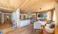Bodentiefe Fensterfronten fangen das grandiose Bergpanorama ein und lassen den Raum in natürlichem Licht erstrahlen.