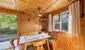 Die Stube, dominiert von natürlichem Holz, verströmt eine harmonische und gemütliche Atmosphäre – ein Ort, an dem man gern zusammensitzt, lacht oder einfach nur den Blick in den Wald schweifen lässt.