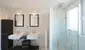 Das edle Tageslicht-Badezimmer ist mit Whirlpool-Badewanne, Dusche, WC, Bidet und Doppelwaschbecken ausgestattet – eine echte Wellness-Oase für Zuhause.