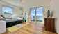 Im Erdgeschoss öffnet sich der großzügige Wohnbereich mit einer offenen Küche und einem Gäste-WC. Von hier geht es hinaus auf die große Terrasse. Dank der überdachten Sitzmöglichkeit können Sie die herrliche Aussicht bei jedem Wetter genießen.