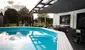 Auch der Außenbereich überzeugt: Die überdachte Terrasse verbindet direkt mit Garten und Pool und lädt zum Entspannen und Verweilen ein. Das 456 m² große Grundstück bietet zudem reichlich Platz für individuelle Gestaltungsmöglichkeiten.