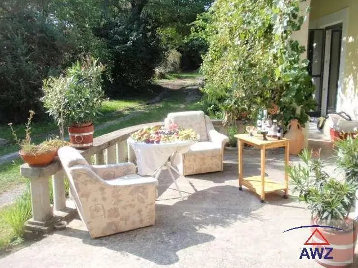 Der sanierte Altbau aus den 1920er Jahren wurde zwischen 2019 und 2022 behutsam modernisiert. Er verbindet den nostalgischen Charakter vergangener Zeiten mit zeitgemäßer Ausstattung wie Zentralheizung und moderner Küche. Der überdachte Arkadengang lädt zu entspannten Stunden mit Blick ins Grüne ein.
