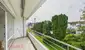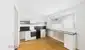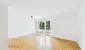 Der großzügige Wohnbereich bietet direkten Zugang zum Balkon, der mit einer Markise ausgestattet ist – ideal, um entspannte Stunden im Freien zu genießen. Die Küche ist separat angeordnet und fügt sich harmonisch in den Grundriss der Wohnung ein.