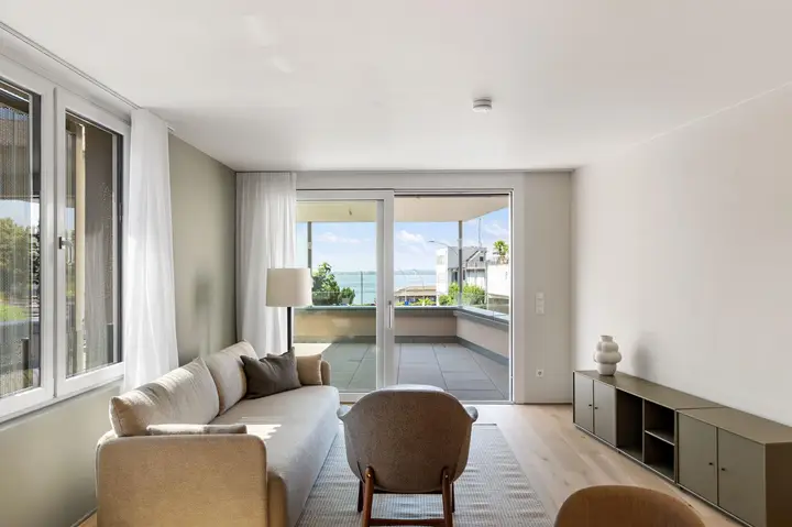 Die Kleinwohnanlage »Am Tannenbach« mit nur 4 Wohneinheiten befindet sich in direkter Nachbarschaft zur Kaserne und nur 3 Gehminuten vom Bodenseeufer entfernt. Es werden in Anbau an das bereits bestehende Nachbargebäude großzügige 4-Zimmer Wohnungen von ca. 96 m² bis ca. 102 m² Wohnfläche und ca. 22 m² großen Balkonen realisiert. Die Wohnung Top 1 im EG ist fertig ausgebaut und teilmöbliert.