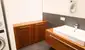 Edle Parkettböden (Eiche geräuchert) und eine hochwertige Steinwand schaffen in den Wohnbereichen eine warme, einladende Atmosphäre, während hochwertige Fliesen im Bad, ebenfalls mit Einbauschränken und einem Handtuchtrockner, für zeitlose Eleganz sorgen. Die maßgeschneiderte Einbauküche ist ein wahres Schmuckstück – funktional durchdacht und ästhetisch ansprechend.