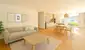 Der großzügige Wohn-, Ess- und Kochbereich bildet das Herzstück der Wohnung. Dieser ist offen gestaltet, lichtdurchflutet und mit direktem Zugang auf die gemütliche Terrasse mit Garten.