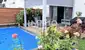 Im Erdgeschoß führt das Vorzimmer in das großzügig geschnittene Wohnzimmer mit Ausgang zum Garten und Pool. Hier können Sie abschalten und der Hitze im kühlen Nass trotzen.