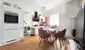 Im hinteren Bereich des Wohnzimmers liegt die hochwertige Einbauküche. Über einen kleinen Gang gelangt man zu den zwei Schlafzimmern, dem Tageslicht-Bad und dem separaten WC. Ein Abstellraum und der ebenerdig gelegene Lagerraum bieten viel Stauraum.