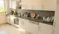 Die Küche sowie das Wohnzimmer sind separat vom Flur aus zu begehen, aber auch durch einen Rundbogen miteinander verbunden.