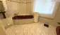 • Badezimmer mit Eckbadewanne, Dusche, Doppelwaschbecken und WC