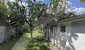 Im Garten befinden sich Schuppen sowie Obstbäume und Rosenstöcke.