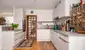 Im Obergeschoss entfaltet sich ein großzügiger Wohn- und Essbereich mit direktem Zugang zum Balkon, der eine Aussicht über den gesamten Innenhof bietet. Eine separat integrierte moderne Küche mit hochwertigen AEG-Geräten und zusätzlicher Speisekammer rundet das Ambiente ab. Des Weiteren gibt es ein Badezimmer mit großer Dusche und Badewanne, ein separates WC sowie ein Büro/Ankleidezimmer, welches Zugang zu einem geräumigen Schlafzimmer bietet.