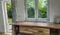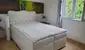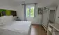 Direkt daneben befinden sich ein Badezimmer mit Dusche sowie ein separates WC. Die Tür zwischen Küche und Badezimmer kann nach Wunsch eingebaut werden. Im hinteren Bereich lädt ein ruhiges Schlafzimmer zum Entspannen und Erholen ein. Für das angenehmes Raumklima sorgt eine moderne Klimaanlage, die im Winter wärmt und im Sommer kühlt. Bei Bedarf können zusätzlich Infrarot-Radiatoren installiert werden.