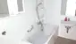 Das separate WC und das geflieste Badezimmer mit Badewanne und Waschbecken bieten zusätzlichen Komfort und Privatsphäre.
