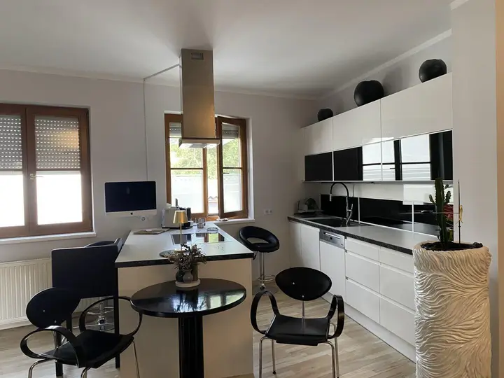 Die Wohnung hat einen offenen Grundriss und ist hochwertig ausgestattet. Eine offene Küche mit Essplatz, ein großzügiges Wohnzimmer mit Ausgang zur ca. 15 m2 großen Terrasse , 2 Schlafzimmer , 1 Wc und ein Bad mit Waschmaschine und Trockner.