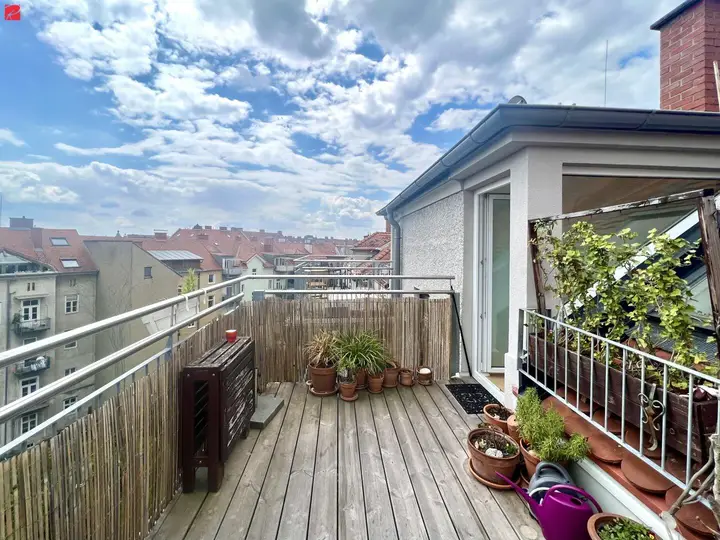 Die großzügige südöstlich ausgerichtete Terrasse verspricht Ihnen einige ruhige Abendstunden mit Blick auf die Herz-Jesu-Kirche. Grillen Sie gemeinsam mit Freunden auf der Terrasse bei wundervoller Aussicht oder nehmen Sie ein entspanntes Sonnenbad in einem Liegestuhl. Hier genießen Sie einerseits die TOP-Lage mitten in Graz andererseits können Sie im ruhigen Innenhof gut abschalten und das Vogelgezwitscher genießen. HIER brauchen Sie KEIN Auto. UND: in dieser Wohnung bleiben Sie fit! Die Liegenschaft befindet sich im 4. Stock ohne Lift.