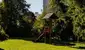 Eine gepflegte Grünfläche mit Tisch und Bänken hinter dem Wohnhaus lädt zum Entspannen und Verweilen ein.