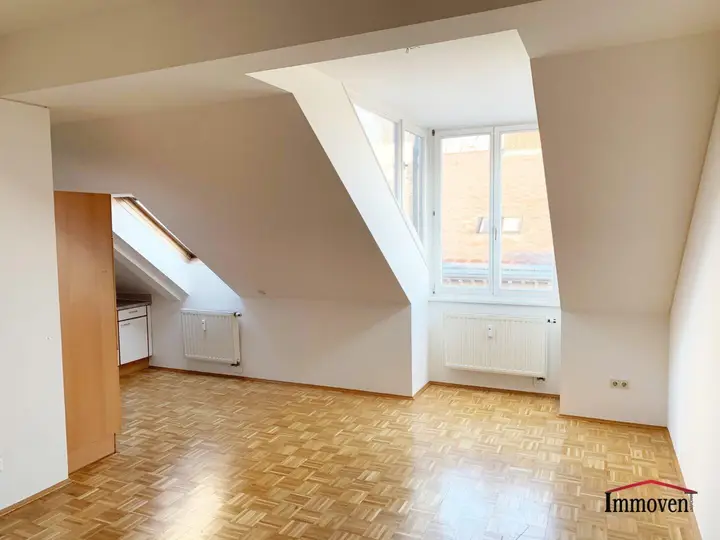 Die Wohnung liegt im Dachgeschoss (kein Lift) und verfügt über einen ausgezeichneten Grundriss.
